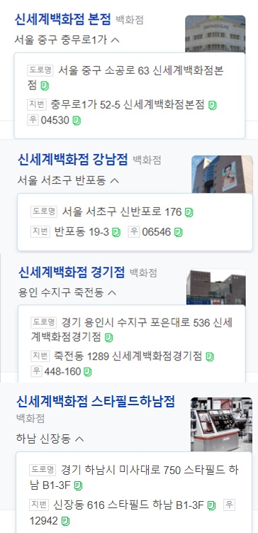 서울 본점, 강남점, 경기점, 하남스타필드점... 몇 곳 없습니다.