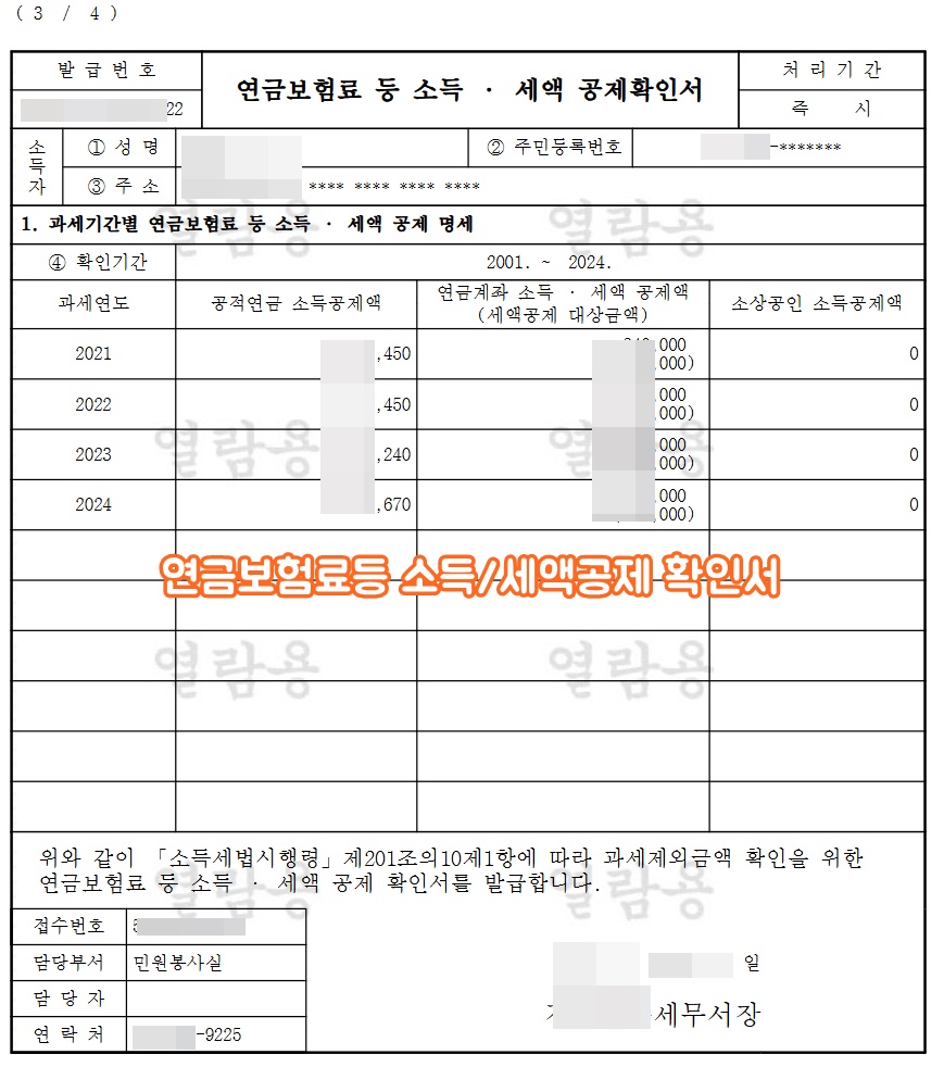 연금보험료 등 소득/세액공제 확인서 발급방법